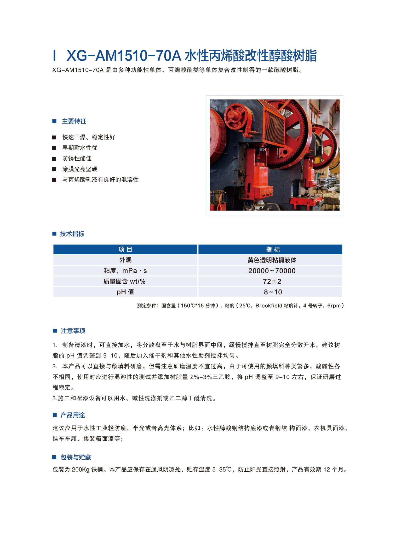 產品中心 > XG-AM1510-70A 水性丙烯酸改性醇酸樹脂
